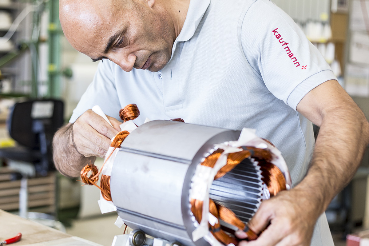 Mit eigener Elektrowicklerei und komplett ausgestatteter mechanischer Werkstatt gewährleistet Kaufmann AG in Niedergösgen einen umfassenden Unterhalts- und Reparaturservice. Folgen Sie uns durch eine kleine Tour durch unser Unternehmen durch Klicken auf die Pfeile.