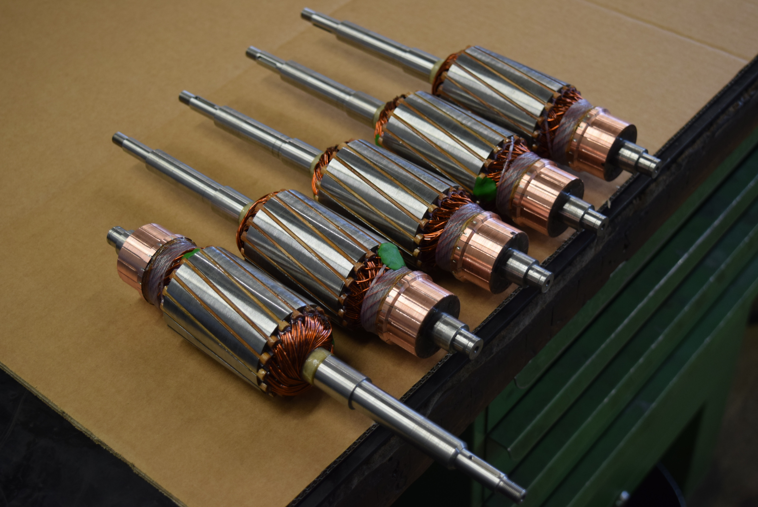 Auch wenn es mal keine Ersatzteile mehr gibt, können wir weiterhelfen. Auf Anfrage eines Verkehrsbetriebes wurden diese DC - Rotoren nach einem schrottreifen Muster von A - bis Z neu angefertigt. Dazu wurden Wellen gedreht, gefräst, geschliffen, Elektrobleche gemäss Schnittvorgabe beschafft, geschachtelt und aufgezogen, kompatible Kollektoren herausgesucht und aufgeschrumpft, die Wicklungsdaten erfasst, isoliert, gewickelt und gelötet, sowie imprägniert und gewuchtet.